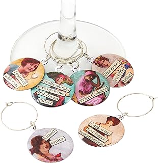 Funny Vintage Women Wine Glass Charms - Set of 6 Wine Tags. Always know which glass is yours with these wine markers