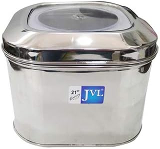 JVL Stainless Steel Kitchen Storage Cubic Store Tin with C Thru Lid, (Size - L-18cm x B-18cm x H-13cm) Capacity - 2.75 Litres