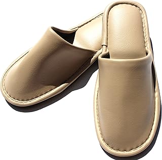 抗菌レザー調 ビニールスリッパ 【5足セット】【色とサイズが選べる】 抗菌加工済み 水拭き可 外縫い スリッパ 大きめ ゆったりサイズ 厚底 男女兼用 ゲストスリッパ 業務用 来客用にもお薦め SPV011 (M(23.5~26.0cm), サンドベージュ)