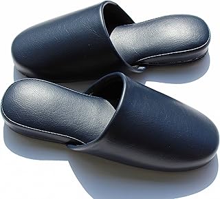 TOKYO SLIPPER 抗菌レザー調 ビニールスリッパ 抗菌加工済み 水拭き可 前閉じ 厚底 スリッパ 滑り止め付き 男女兼用 ゲストスリッパ 業務用 来客用にもお薦め (ネイビー, フリーサイズ(23.0~26.0cm))
