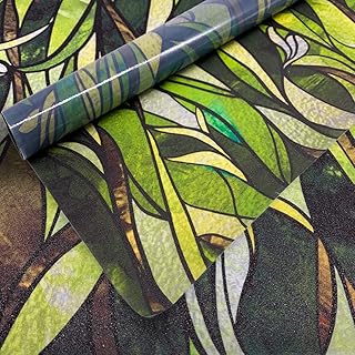 funlife 17.7インチ x 118インチ プライバシー ステンドグラス ウィンドウフィルム 非粘着 静電気 クリング ガラスカバー 断熱 UVブロック 耐熱 緑の葉