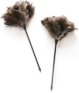 ダチョウラバ ほこり取り ダスター ダスト除去アーティファクト ホームクリーニングブラシ フェザーダスター 毛はたき 毛才 小 羽根ハタキ 隙間掃除 天然素材 木製ハンドル 39cm 長さ、高い場所/エアコン/扇風機/キッチン/家具/超強力吸塵/脱毛なし(2ほこり取り)