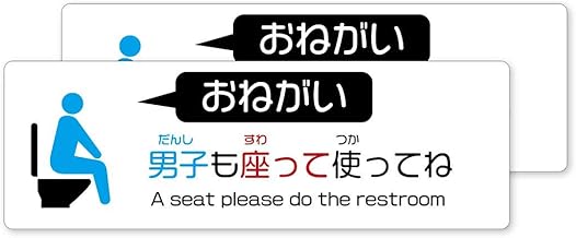 トイレステッカー 2枚セット 男子も座って使ってね お願い マナー 立ちション禁止 防水 店舗 POP 強粘着