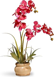 National Tree Company 造花 シルクフラワー セラミックポットベース オーキッド 24インチ 24インチ パープルオーキッド