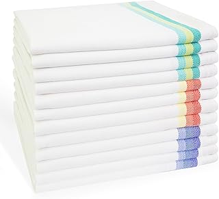 (12 pack, Multicolour Stripes) - Tea Towels by Harringdons - 100% Cotton - Soft, Absorbent and Lint Free. Set of 12 LARGE Kitchen Dish Towels 50 x 68 cm in CLASSIC Herringbone Weave. White with Blue, Green and Red stripes, 4 of each. Add beauty to kitchen life.