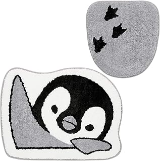 大同(Daido) トイレカバー2点セット のぞき見動物 ペンギン グレー/ホワイト トイレマット: 40x60cm フタットシート: 38.5x41cm