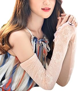 アームカバー ロング サイズ [長さ53cm] 薄手 (typeA) レース 付き フィンガーレス/ミニタオルセット / 紫外線 ガード UV ケア 日焼け 防止 日よけ 手袋 [MG151-01-010]