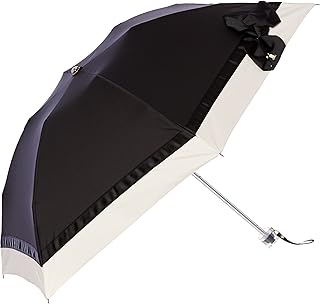 [ムーンバット] 折りたたみ傘 MOONBAT(ムーンバット) LANVIN en blue(ランバン オン ブルー) ビジュー付きリボン 日傘 おりたたみ傘 パラソル りぼん シンプル オシャレ かわいい 遮熱・遮光 レディース ブラック 親骨の長さ:約50㎝