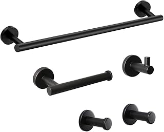 USHOWER バスルームハードウェアセット マットブラック 24インチ モダンスタイル タオルバーセット SUS304 ステンレススチール バスルームアクセサリー 5点