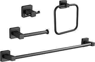 HUOSUC バスルームハードウェアセット 4ピース タオルバーセット ステンレススチール 17インチのハンドタオルバー タオルリング ローブタオルフック トイレットペーパーホルダー バスルームタオルラックセット (マットブラック) (旧バージョン)