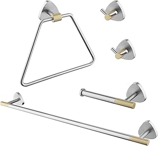 Frafuo 5点 バスルームハードウェアセット 真鍮とSUS304 厚めのステンレススチールタオルラックセット 24インチのハンドタオルバー トイレットペーパーホルダー タオルリング ローブフック バスルームアクセサリー タオルバーセット
