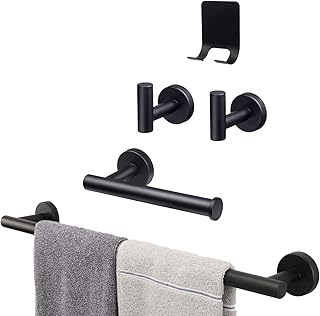 TocTen バスルームハードウェアセット 厚さ304ステンレススチール 5ピース タオルバーセット 21インチのタオルバー+トイレットペーパーホルダー+ローブフック3個 壁掛けバスルームアクセサリータオルラックセット (マットブラック)