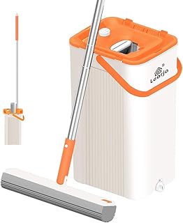 LEARJA スポンジモップ プレミアムPVAモップ ハンズフリー 洗濯 プロフェッショナルモップ床掃除 スクイズモップとバケツ 硬材ラミネート用 (オレンジバケツ1個 + グレーモップヘッド1個)