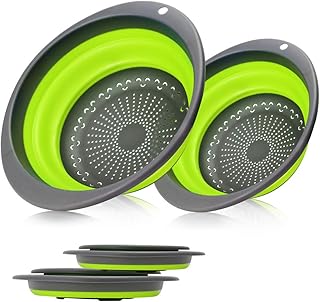 折りたたみ式水切りセット – 2つの折りたたみ式セット Learja アップグレード 食品グレードシリコンキッチンストレーナー スペースセーバー 折りたたみ式ストレーナー 水切りざる サイズ8 – 2クォート、10 – 4クォート(グリーン)