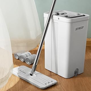 JOYMOOP モップとバケツ リンガーセット フラットフロアモップとバケツ スクイーズフロアモップ 洗えるマイクロファイバーパッド3枚 ウェット&ドライ 家庭用掃除ツール 硬材 ラミネート タイル用