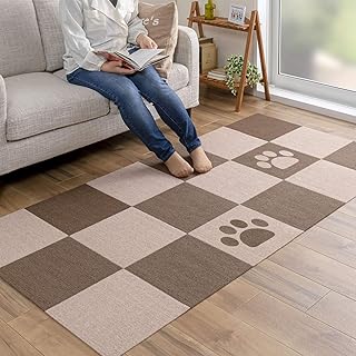 サンコー ずれない ジョイントマット 撥水 消臭 洗える タイルマット カーペットタイプ 30×30cm 18枚組 ブラウン ベージュ 無地+足形セット おくだけ吸着 日本製 KV-63